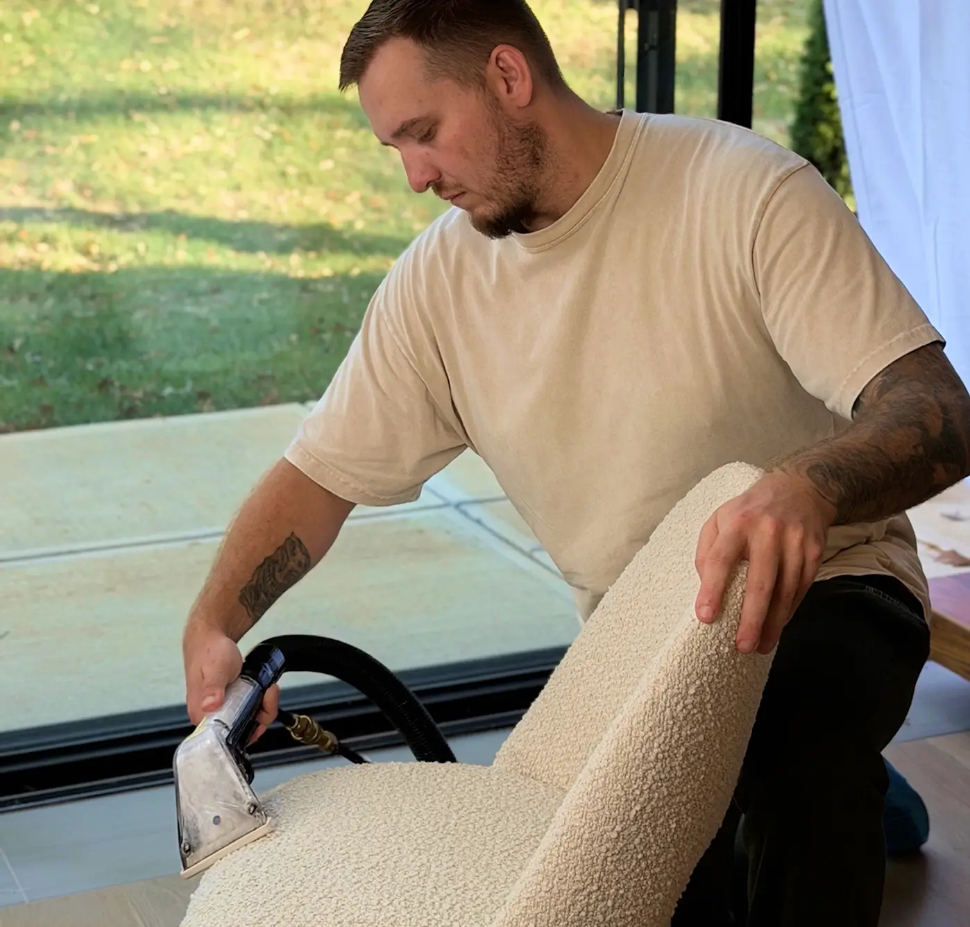 We use fabric-safe methods and control moisture to protect color and texture. That said, outcomes can depend on fabric type, wear, sun fading, and previous cleaning attempts. We’ll choose the safest approach and set expectations upfront — especially for delicate or older upholstery.