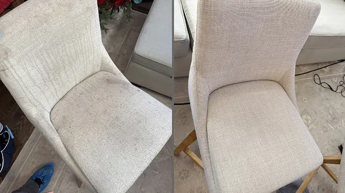 Chair cleaning is usually quick. Most dining chair jobs take under an hour for a small set, while larger pieces like armchairs or recliners take longer depending on condition and staining. The final time depends on how many items you have and whether we’re doing stain removal or odor treatment.