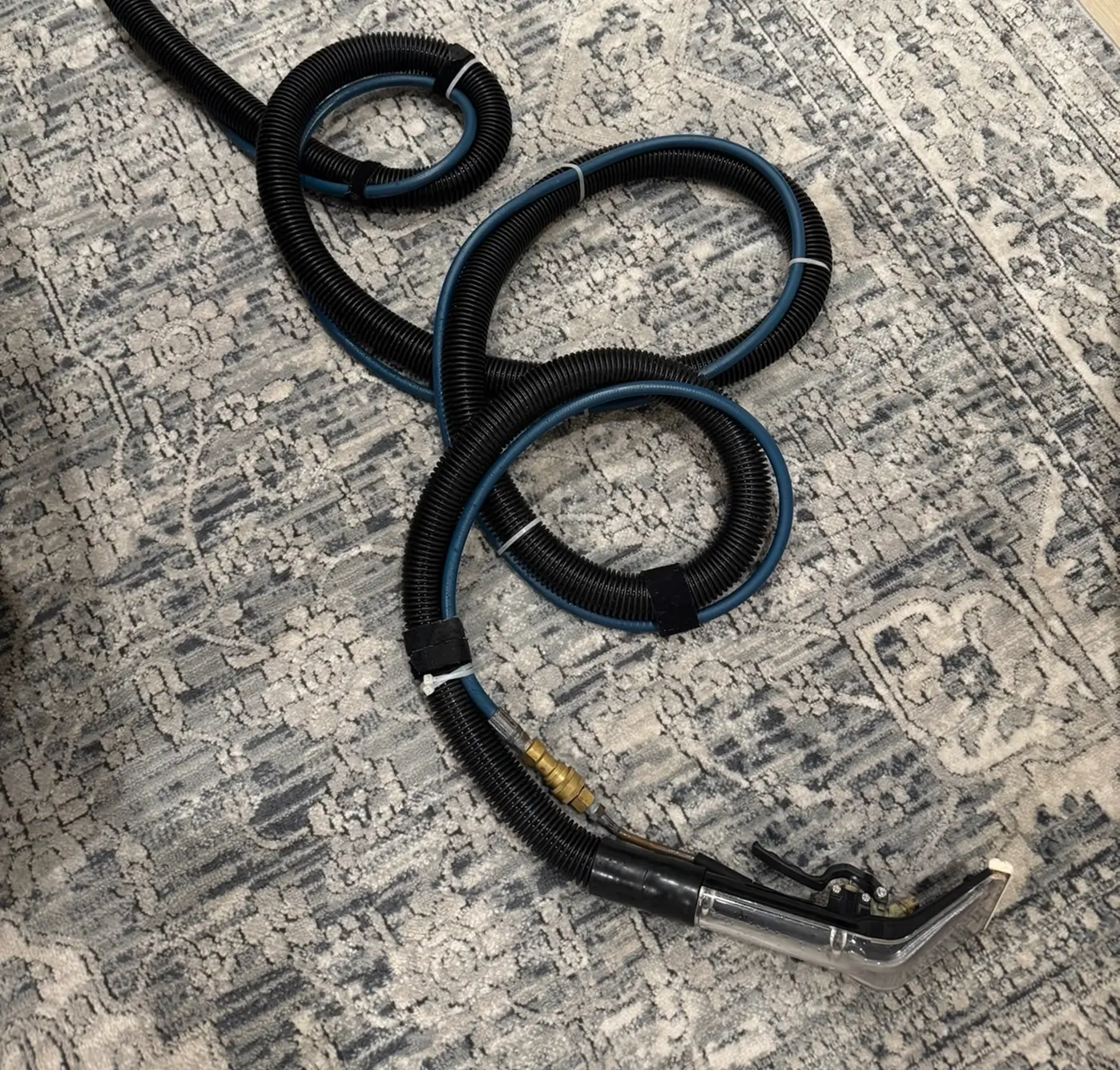 Along with hot water extraction, we run a special rinse through the system that helps sanitize the rug fibers. The combination of pre-treatment, high-temperature water, and our rinse solution works deep into the pile, helping to reduce bacteria, dust mites, and outside contaminants tracked in on shoes and paws. This step is especially important if kids play on the floor or pets sleep on the rug.